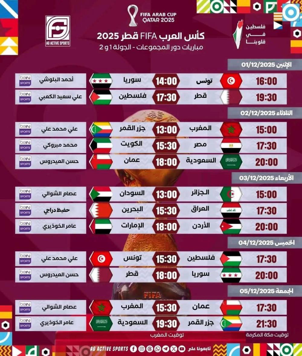 جدول مباريات بطولة كأس العرب قطر 2025